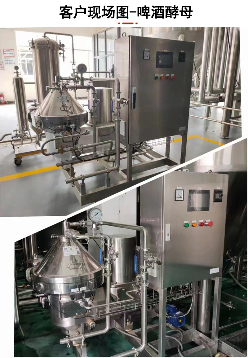 本機適用后酵啤酒的澄清的應用時,酵母分離率不低于80%,鮮啤酒澄清應用時,酵母分離率不低于90%。
