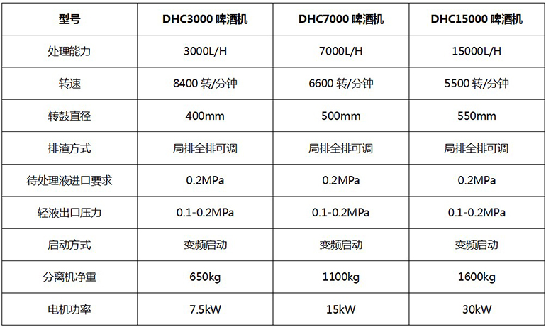 三、啤酒酵母分離機主要技術(shù)參數(shù):